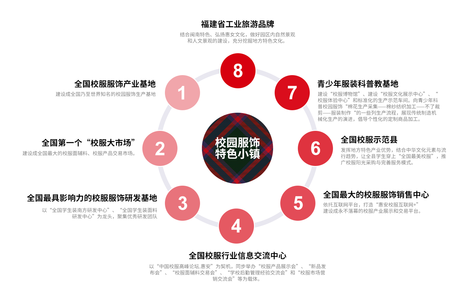 校服產(chǎn)業(yè)是惠安的傳統(tǒng)支柱產(chǎn)業(yè),也是伴隨著改革開發(fā)腳步發(fā)展起來的一個(gè)產(chǎn)業(yè)。特別是近年來,在中國教育裝備行業(yè)協(xié)會和上級黨委、政府的關(guān)心支持下,惠安的校服產(chǎn)業(yè)進(jìn)入了高速發(fā)展階段,目前擁有生產(chǎn)企業(yè)500余家、銷售隊(duì)伍上萬人,產(chǎn)銷量占據(jù)全國半壁江山?;莅部h委、縣政府高度校服產(chǎn)業(yè)的發(fā)展,研究制定更具針對性的幫扶政策,加大對校服企業(yè)生產(chǎn)性設(shè)備引進(jìn)、招投標(biāo)等方面的扶持力度,助力產(chǎn)業(yè)做大做強(qiáng),進(jìn)一步推動“工業(yè)設(shè)計(jì)”在惠安校服企業(yè)“落地生根”“生根發(fā)芽”“茁壯成長”;進(jìn)一步打響中國校園服飾產(chǎn)業(yè)基地品牌,推動中國校園服飾產(chǎn)業(yè)基地落地;進(jìn)一步完善校服產(chǎn)業(yè)鏈條,彌補(bǔ)企業(yè)研發(fā)短板,做大做強(qiáng)惠安校服產(chǎn)業(yè)。本概念規(guī)劃是為創(chuàng)建“中國校園服飾產(chǎn)業(yè)基地”而進(jìn)行的探討實(shí)踐。