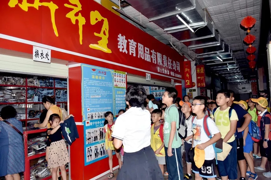 小記者們參觀了南寧市中小學(xué)學(xué)生裝北湖路的實體專賣店,通過現(xiàn)場認(rèn)識“新希望”店面形象、了解學(xué)生裝購買形式、學(xué)生裝款式等知識。