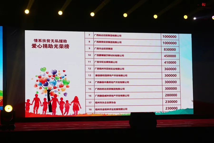 為進(jìn)一步動(dòng)員各民營(yíng)企業(yè)、社會(huì)組織、社會(huì)各界愛(ài)心人士積極參與到扶貧攻堅(jiān)的壯麗事業(yè)中來(lái),形成“人人皆愿為、人人皆可為、人人皆能為”的社會(huì)扶貧參與機(jī)制,集中社會(huì)各方力量高質(zhì)量打贏打好脫貧攻堅(jiān)戰(zhàn),在10月17日我國(guó)第6個(gè)“扶貧日”來(lái)臨之際,10月16日晚梧州市2019年國(guó)家扶貧日“提高脫貧質(zhì)量 鞏固脫貧成果”主題公益晚會(huì)上,百裕集團(tuán)多年來(lái)積極助力脫貧攻堅(jiān)戰(zhàn)役和社會(huì)公益活動(dòng)工作成績(jī)顯著得到表彰。