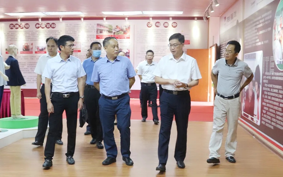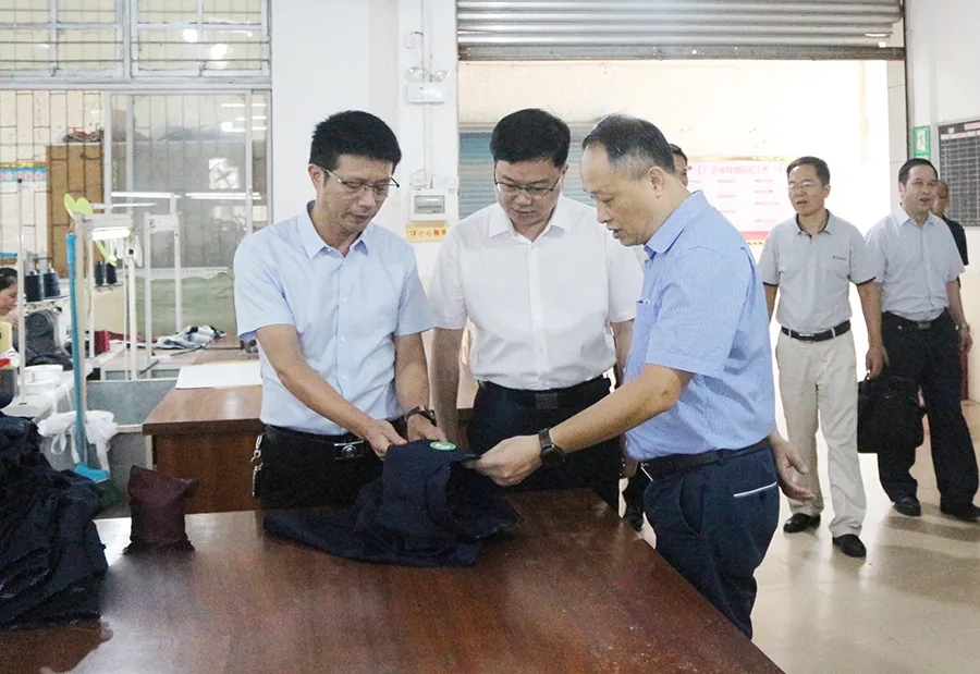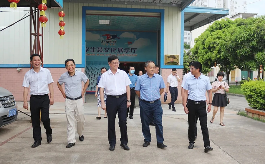 梁藝光副廳長一行人先后參觀了校服文化展示中心、服裝生產(chǎn)車間,期間曾晏來總經(jīng)理向梁藝光副廳長詳細介紹了公司疫情防控工作的落實情況,及復工復產(chǎn)、公司經(jīng)營發(fā)展的情況,表示在疫情期間一定繼續(xù)做好防控措施,保障員工健康安全,確保企業(yè)生產(chǎn)經(jīng)營有序開展。