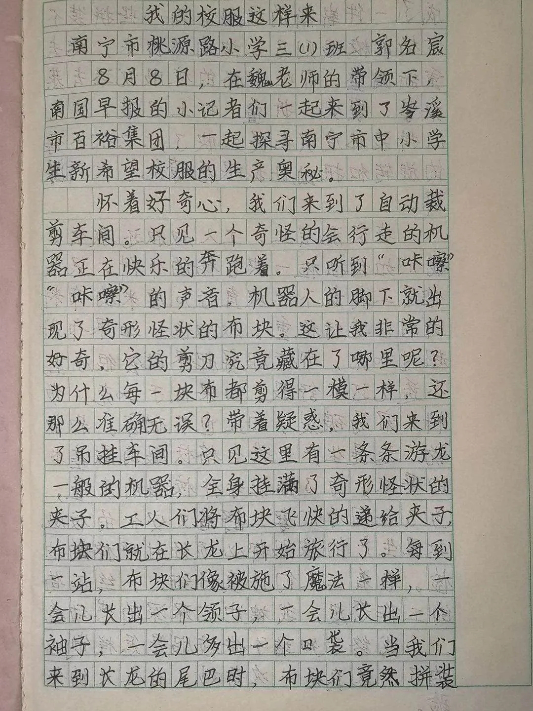 在參觀生產(chǎn)基地后,小記者還寫(xiě)下了自己的所見(jiàn)所聞,向我們遞交了心聲親筆手稿。