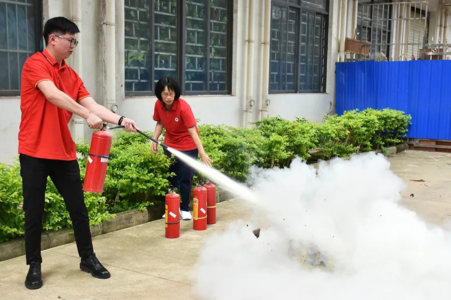 徐教官還重點向大家講解了滅火器的使用要點以及注意事項,并手把手的指導大家如何使用滅火器。大家根據(jù)方法,一絲不茍地完成了干粉滅火器滅火的演練過程。