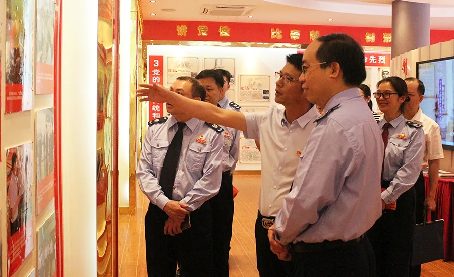 由稅務局黨組書記、局長陳懿帶隊的交流團在百裕黨支部書記曾晏來的帶領下,參觀黨建中心、黨群活動室,了解我公司黨建工作。