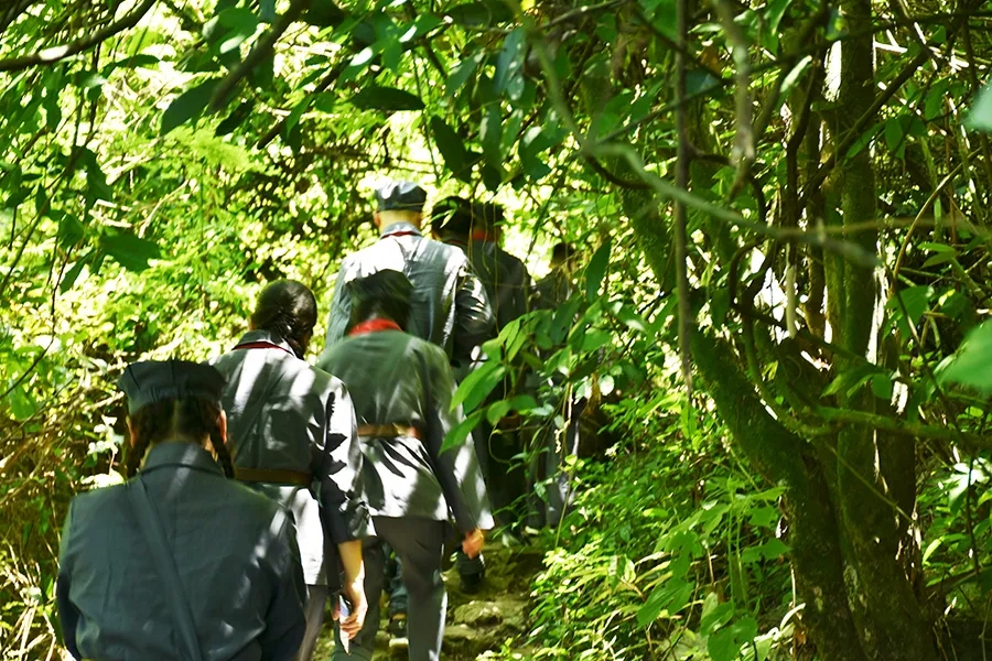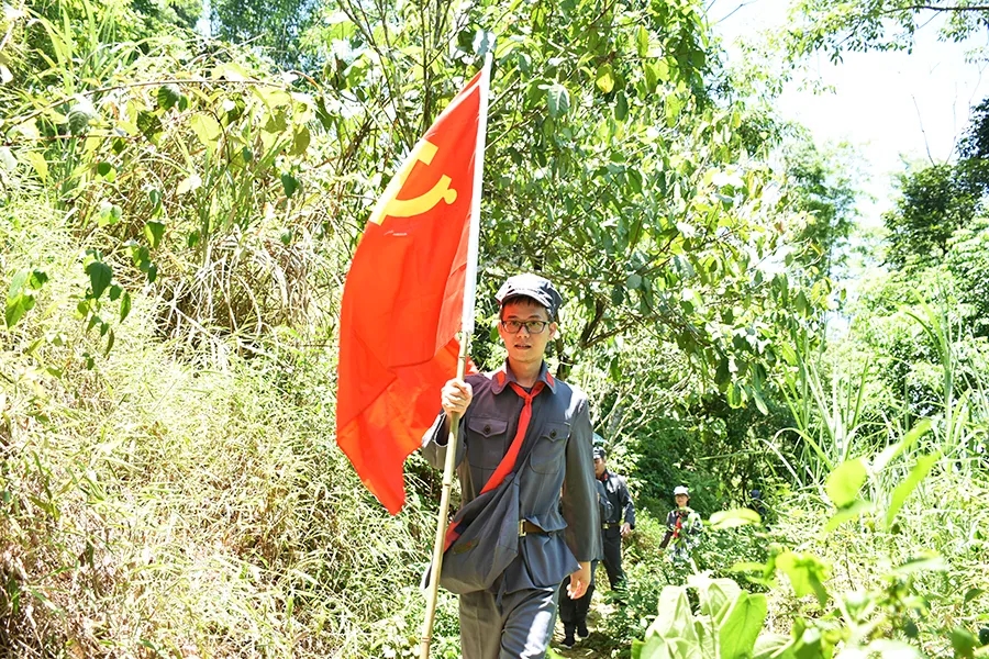 途中,黨員干部了解了鄧小平領(lǐng)導(dǎo)的紅八軍和左江革命委員會(huì)舉行反帝斗爭、張?jiān)埔萃驹谄今R勝利會(huì)師等龍州起義歷史故事,唱著紅歌,走在蜿蜒崎嶇的山路上,黨旗迎風(fēng)飄揚(yáng),黨員干部體驗(yàn)了革命的艱辛和困苦,同時(shí)感受紅軍無所畏懼、勇往直前的使命和擔(dān)當(dāng)。