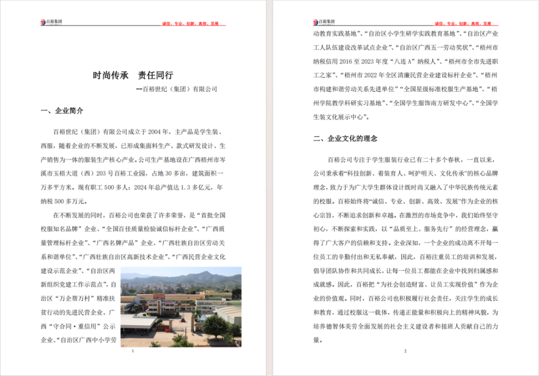 百裕集團(tuán)自2004年成立以來(lái),始終秉持“誠(chéng)信、專業(yè)、創(chuàng)新、高效、發(fā)展”的核心宗旨,堅(jiān)持“為社會(huì)創(chuàng)造財(cái)富、讓員工實(shí)現(xiàn)價(jià)值”的企業(yè)價(jià)值觀。多年來(lái),集團(tuán)不僅在學(xué)生裝、西服等主營(yíng)業(yè)務(wù)領(lǐng)域持續(xù)深耕,更將履行社會(huì)責(zé)任融入企業(yè)戰(zhàn)略和日常運(yùn)營(yíng),實(shí)現(xiàn)了經(jīng)濟(jì)效益與社會(huì)效益的協(xié)同發(fā)展。