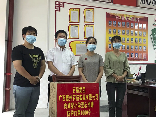 此外,在疫情防控的節(jié)點,百裕集團同時向河池都安紅星小學與城北小學分別捐贈防護口罩各1000個和500個,助力學校守好疫情防控最后一道防線,